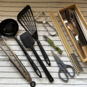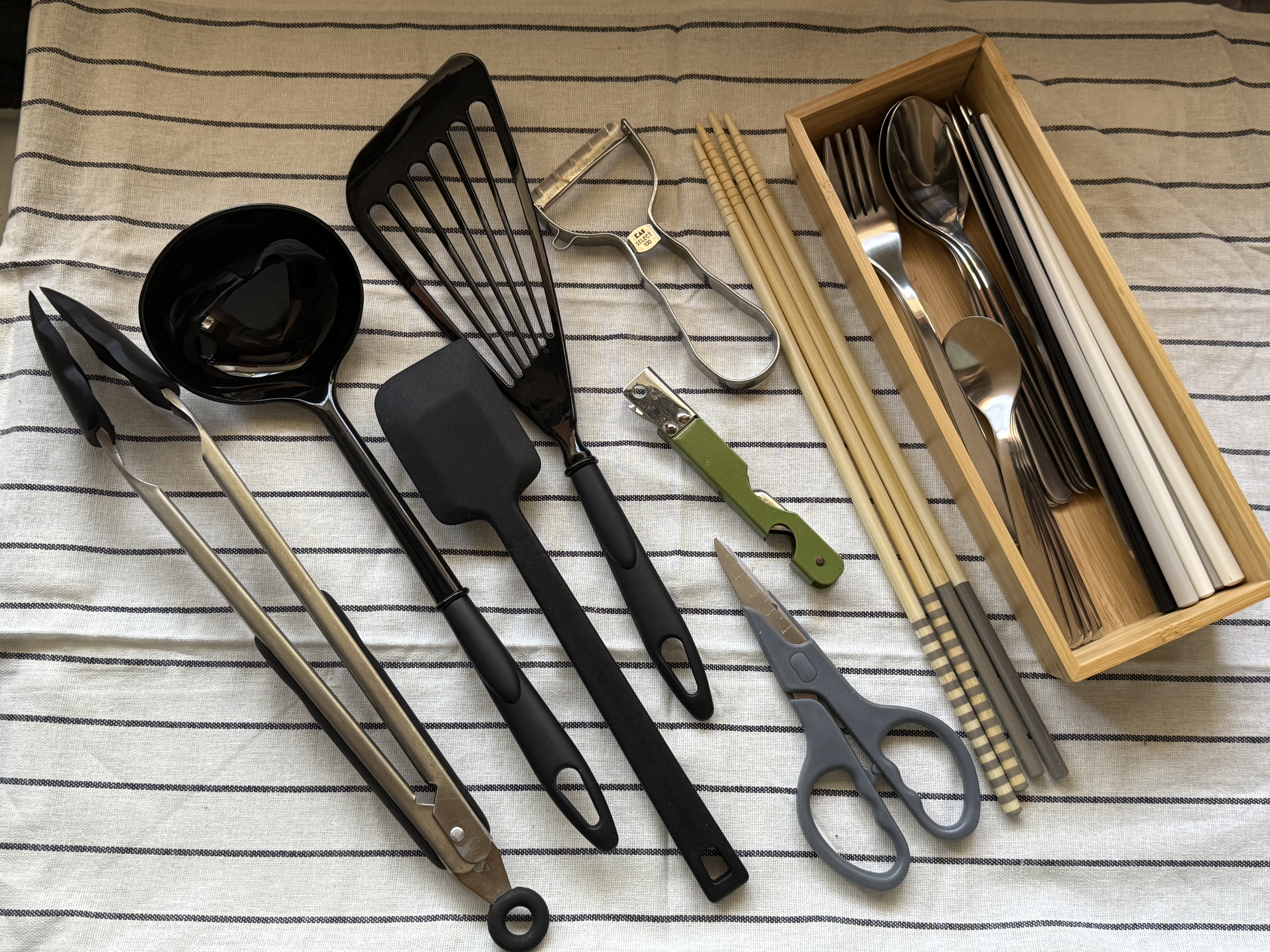 - 食器(プレート大・中・小、どんぶり/グラス/カップ/スプーン、フォーク、ナイフ)